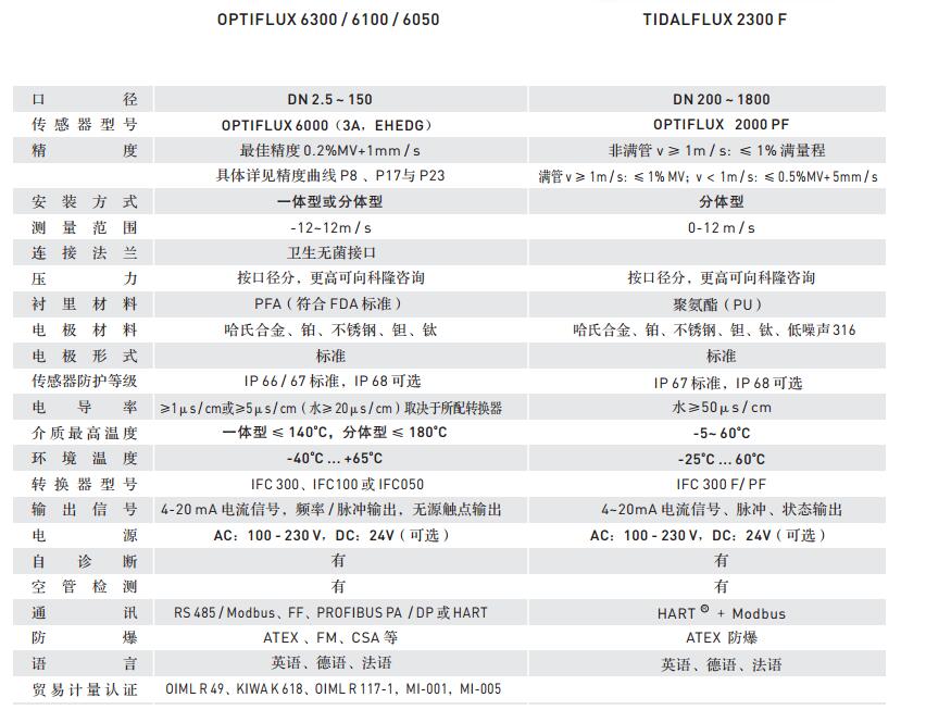 傳感器型號OPTIFLUX6000,轉換器型號IFC050,